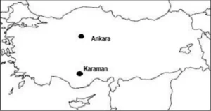 18) Aşağıdaki haritaya göre Karaman'dan Ankara'ya giden bir araç hangi yönde hareket etmiştir?